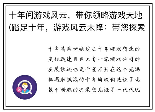 开篇词作为一名游戏编辑,我常常需要穿越高山大海,深入游戏世界探寻最新的游戏动态和趋势。然而,这样的旅程除了繁琐的行程安排和生活困难外,更要面对的是由技术困难和游戏内容带来的挑战。在这篇文章中,我将与你...